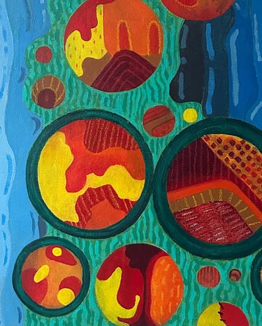 World-building has forced me to be intentional with my color choices. When building HABITAT 2025, I wanted to focus on the contrast between the "outside" and the community built within the circles.
