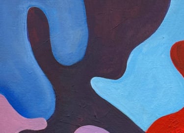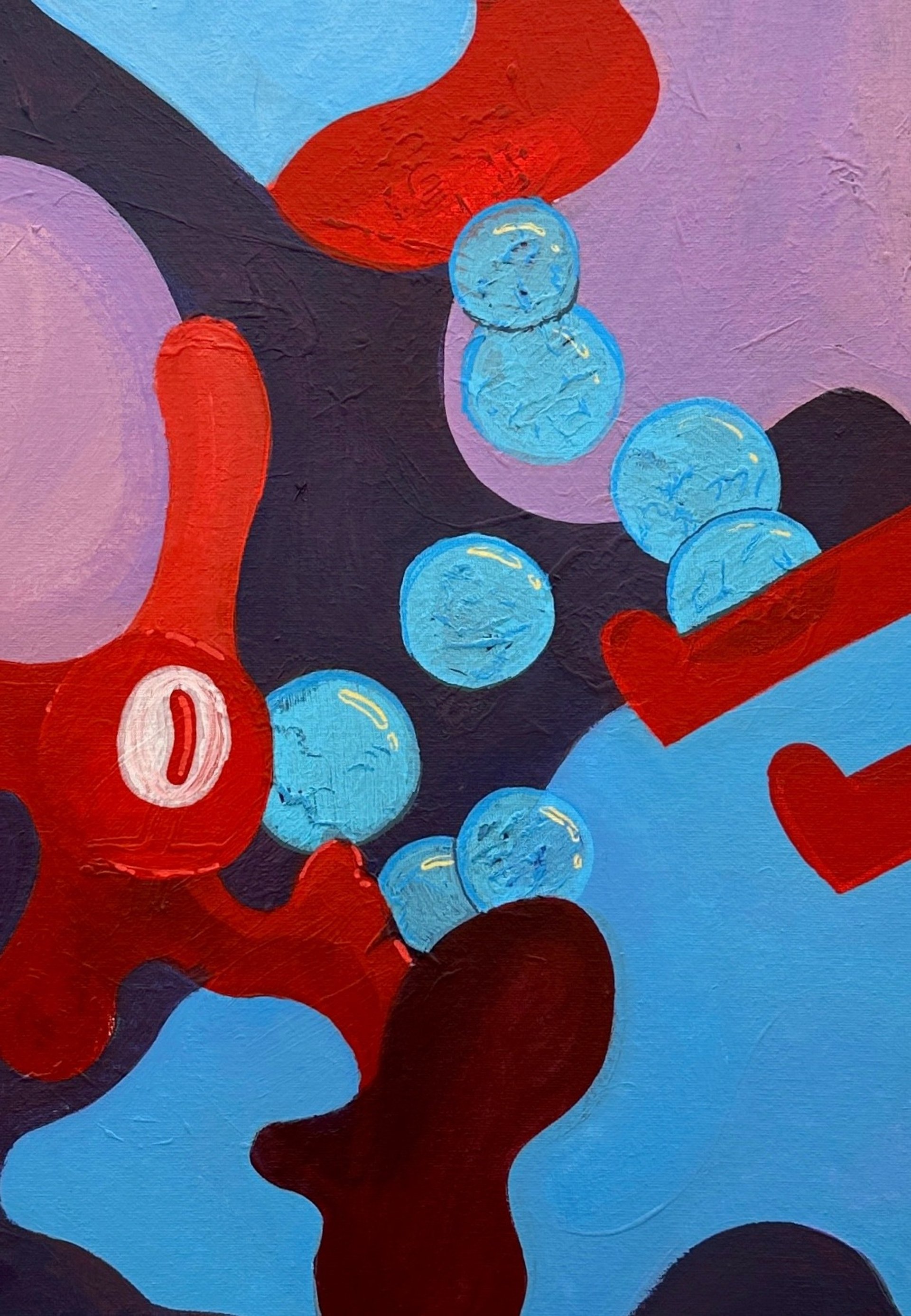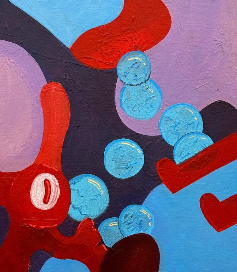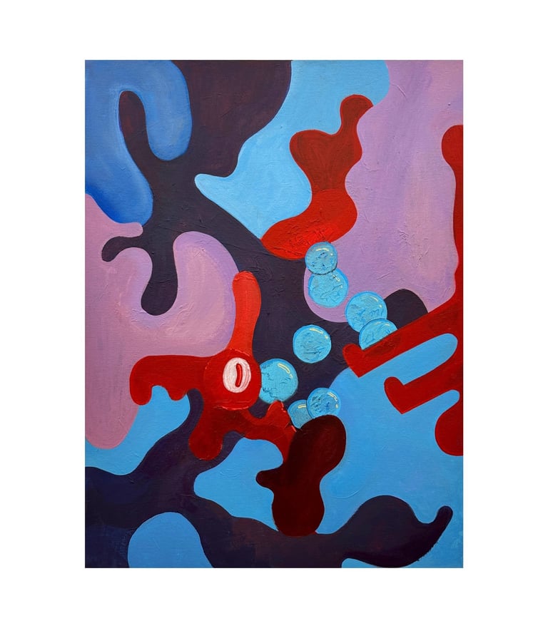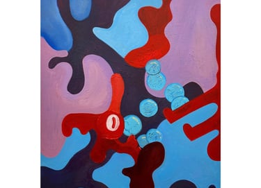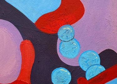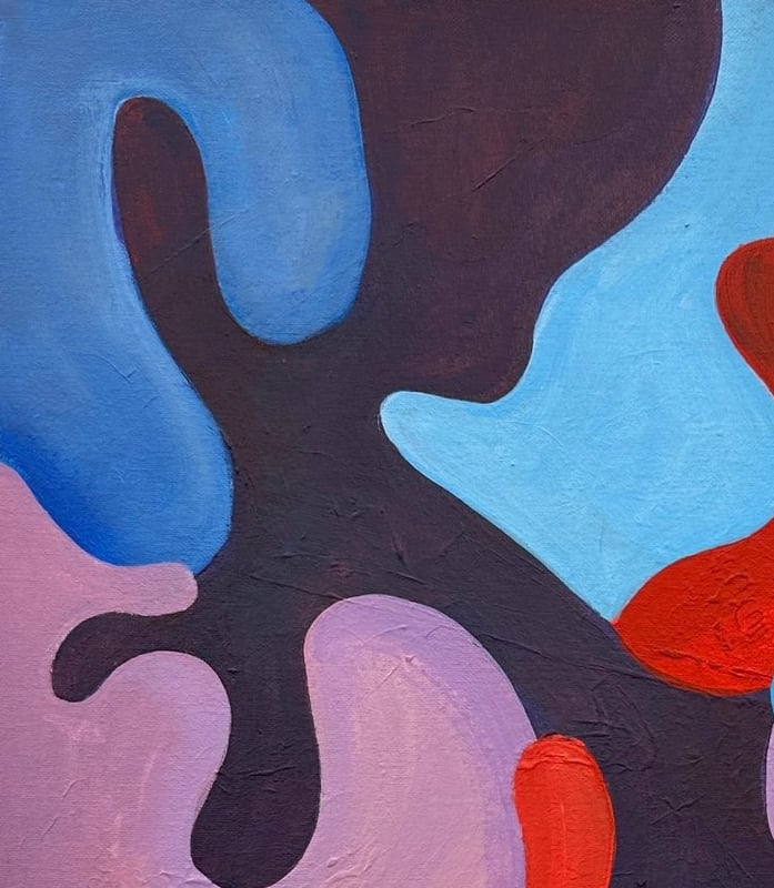 Step step step into my world of funky forms and colors. Creating this piece was a form of therapy and a continued exploration of building confidence as a painter. I love love love the different textures that push through.